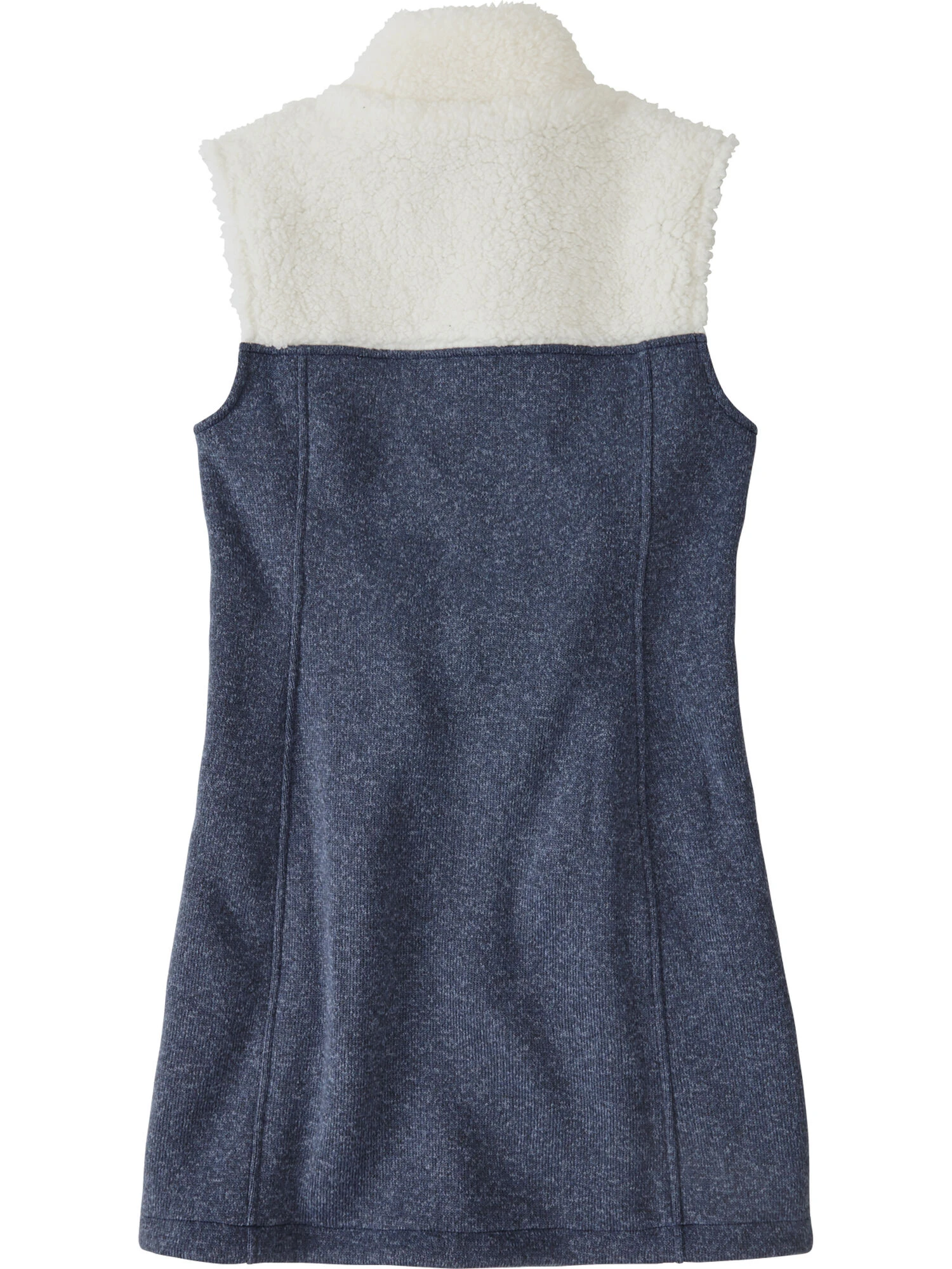 The next best thing to wrapping ourselves in Arctic cottongrass. Once we pull on this sherpa fleece vest dress, the only thing going on deep freeze is our stress levels. Sweater-knit body keeps us cozy, sleeveless styling for bunch-free layering. 1/4 snap front, dress sibling of the Callitrix Jacket. By Title Nine. XS(2), S(4-6), M(8-10), L(12-14), XL(16).
