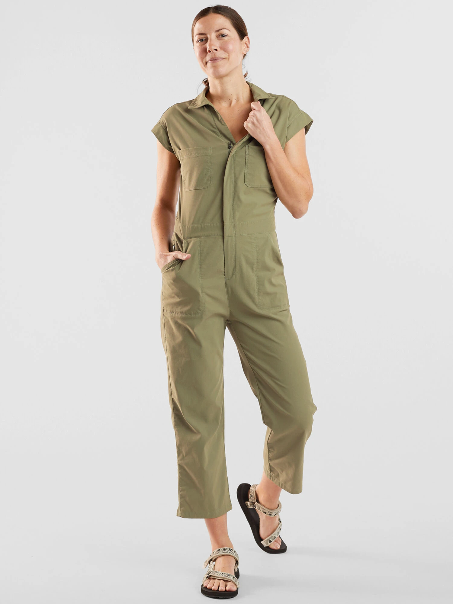 Made for us real-life superheroes, the Evelyn Jumpsuit is what we pull on when we have to be everywhere all at once. Built from our super stretchy, super durable ClambRâ„¢ fabric, this jumpsuit has got plenty of give so we can bend, stretch, and move when things go sideways. Cinch waist adjustment and loaded with pockets. By Title Nine. XS(2), S(4-6), M(8-10), L(12-14), XL(16).