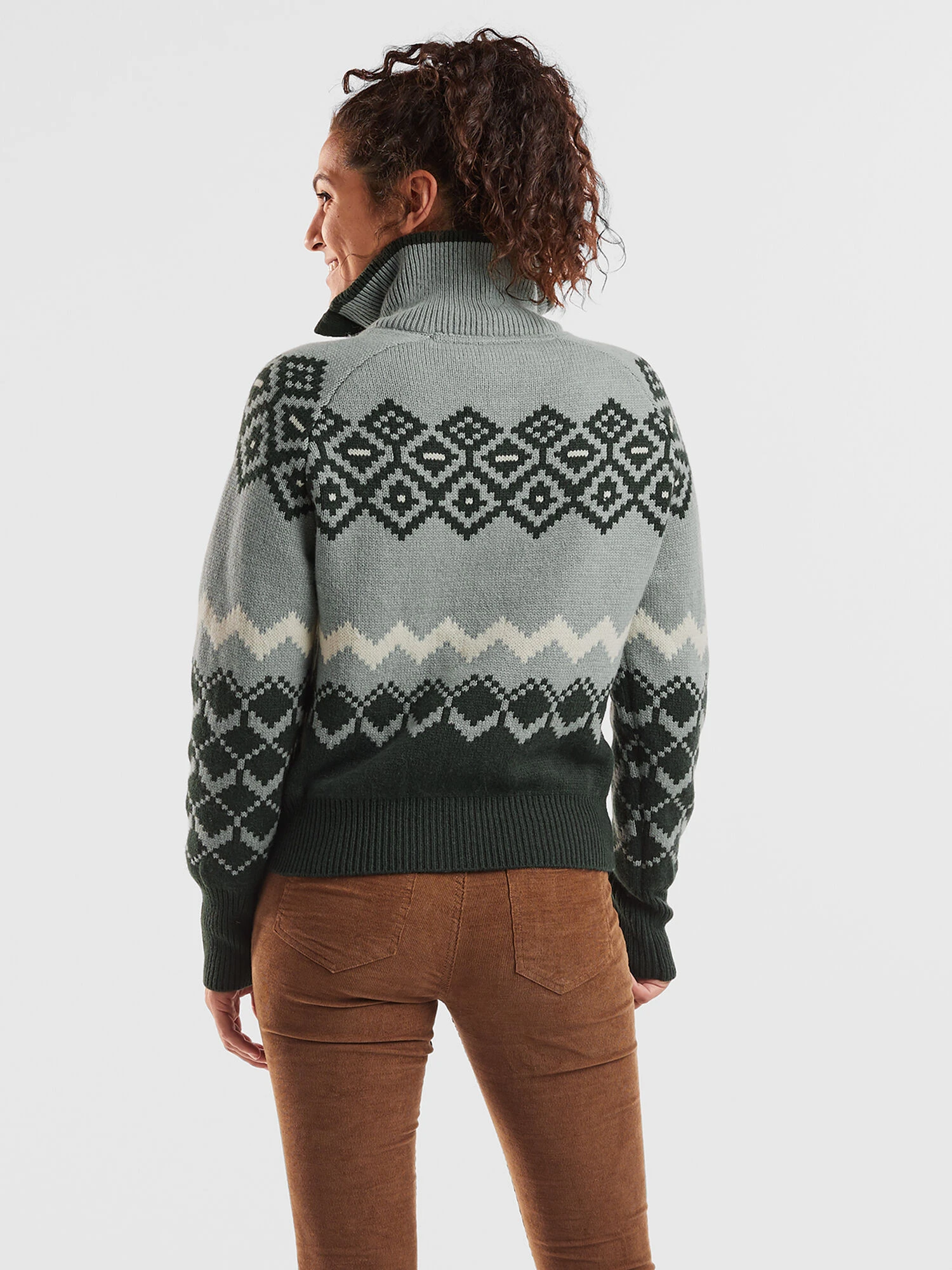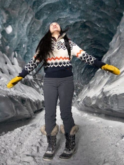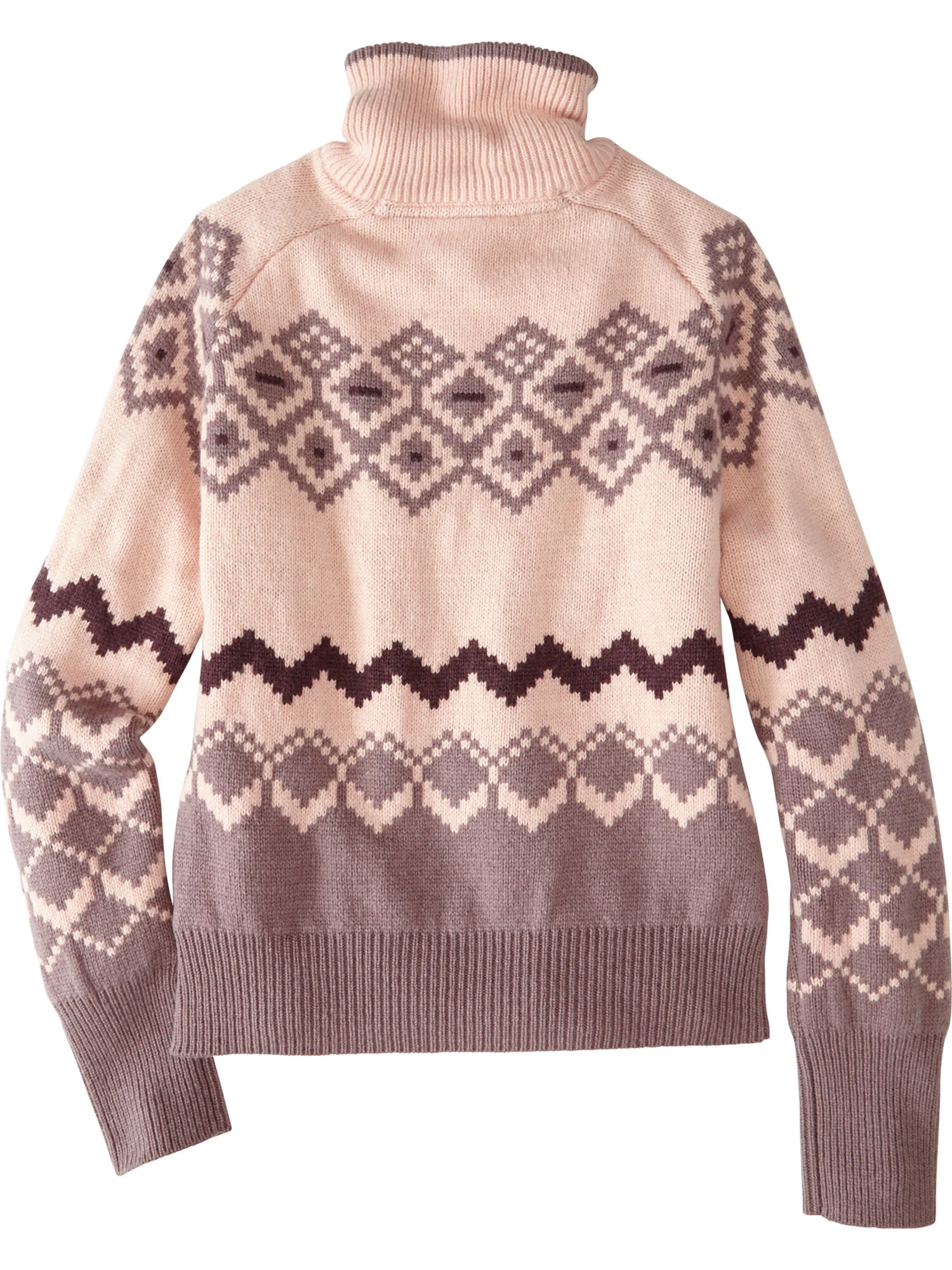 See you on the other side, after the lifts close down and the lights come up. This chunky knit shows its soft side to those coming ’round the mountain, while staying tough against gear-hauling snags. Super soft, machine washable, boxy fit. By Kari Traa. XS(0-2), S(4-6), M(6-8), L(10-12), XL(14).