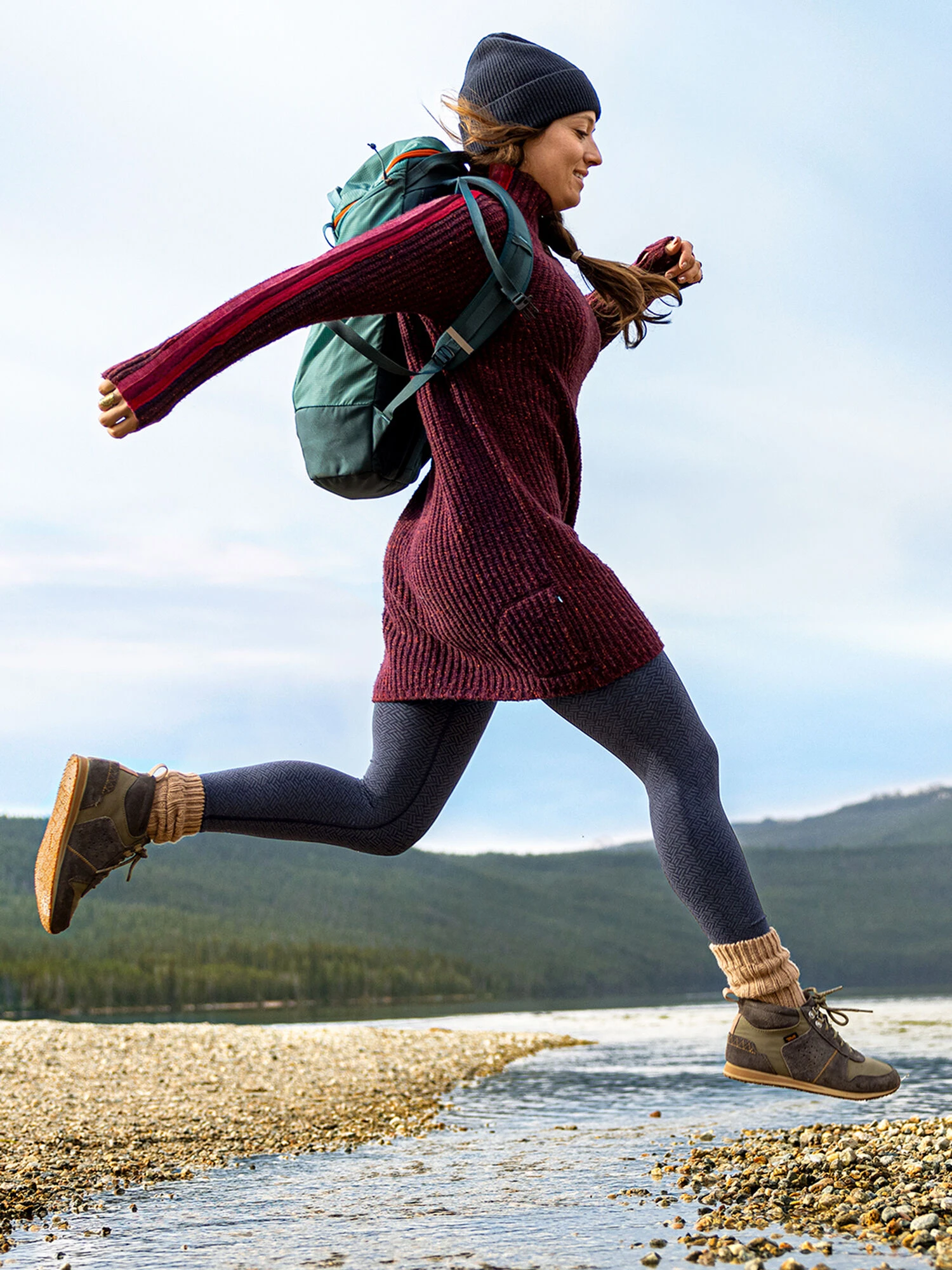 Striped down like our favorite groomers, this soft, chunky ribbed sweater dress lets us bring ski vibes off the mountain. Easy to layer over leggings or base layers if we’re hitting the town straight after the lodge, this off-piste piece is great for chilly Tahoe trips and Stinson stints alike. As a bonus, extra fine Merino blend is naturally odor resistant, so we can stop stink before she comes around the mountain. Now updated with an improved fit. By Krimson Klover. XS(2), S(4-6), M(8-10), L(12-14), XL(16).