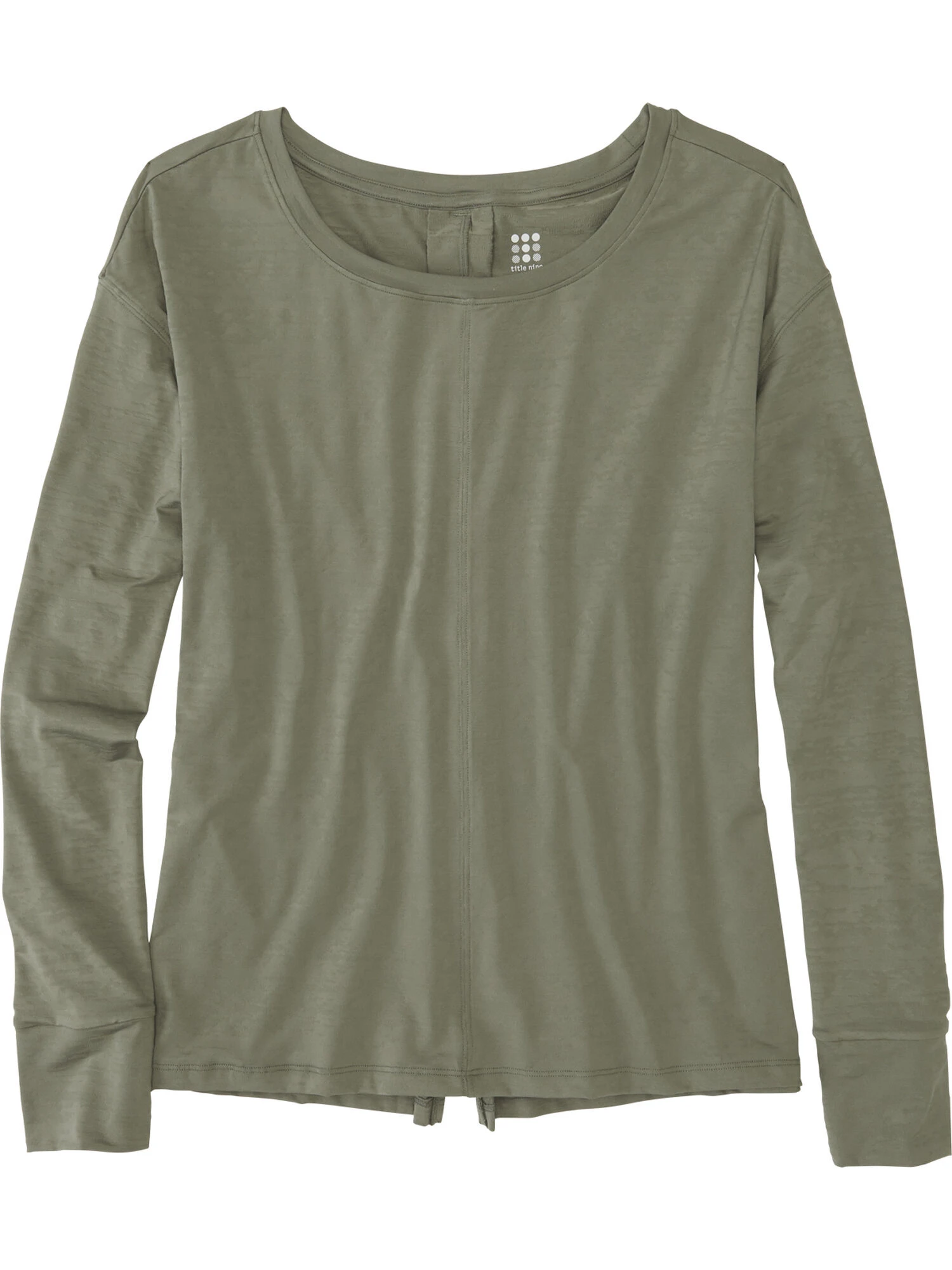 For blazing through workouts and to-do lists alike. Delivers street-ready burnout aesthetic with athletic wicking power and a surprisingly silky, light feel. Back pleat detail. Vented cuffs. Back reflective hit. By Title Nine. XS(2), S(4-6), M(8-10), L(12-14), XL(16).