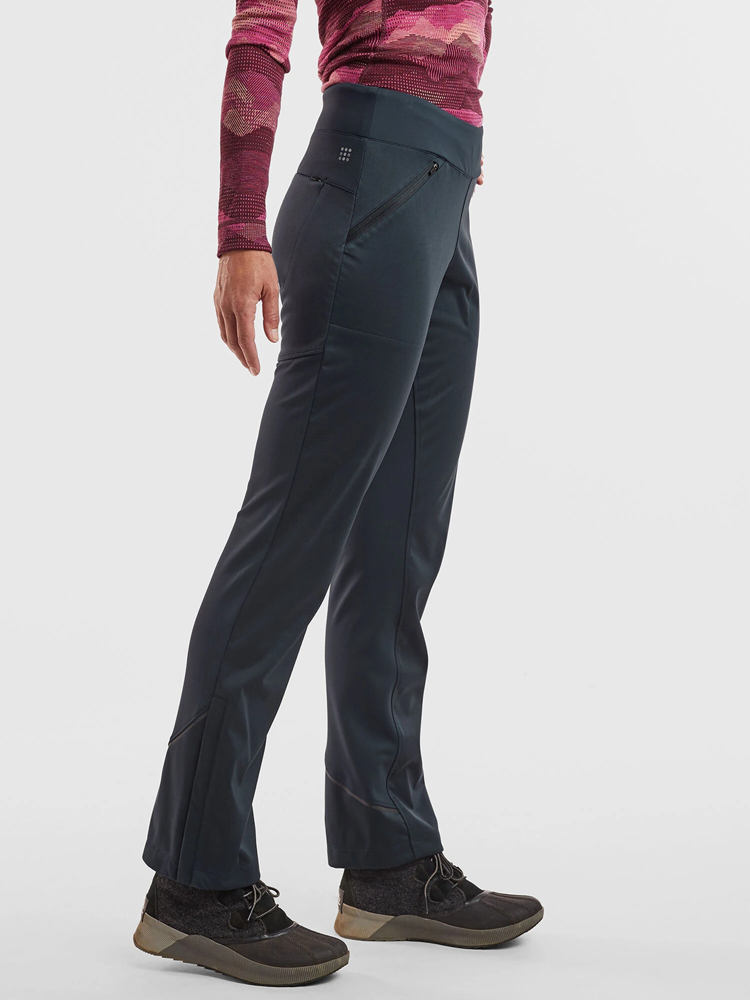 Tired of getting cold waiting for the guys to catch up? Pull on the Snow Slayer. No stinging wind nor snow nor wet can stop us thanks to a pairing of element-proof softshell and breathable, wicking fabric. Sleek interior slides easily over our fave baselayer leggings when the mercury drops. We’ve got your most powerful assets covered with a full softshell front, seat, and ankles. Updated with an improved fit through the waist, hip, and new 100% recycled poly softshell. Wipeout-ready sister of our Cold Killer Pant. Gusseted 9″ locking ankle zips fit most boots. Reflective hits. By Title Nine. 2, 4, 6, 8, 10, 12, 14.